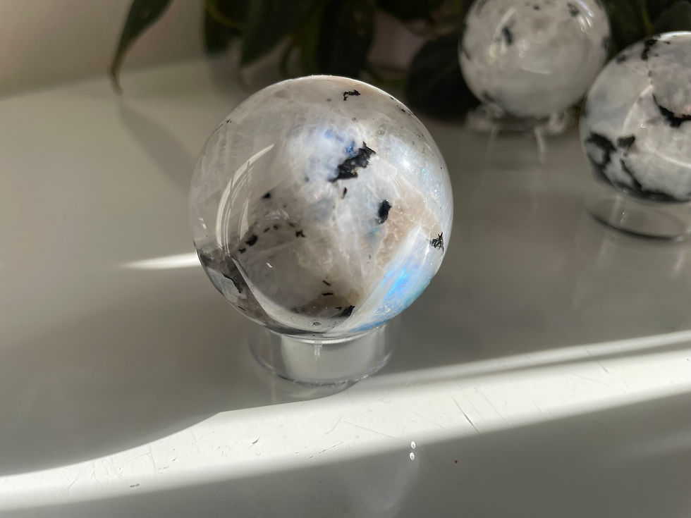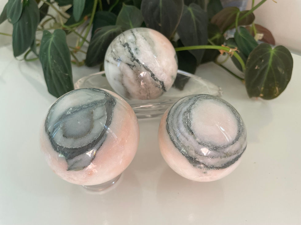 Crystal spheres emit energy in all directions all at once. They are historically held as a sacred shape and due to all points being the same distance away from the centre, makes it a pure connection of integrity, unity and completeness